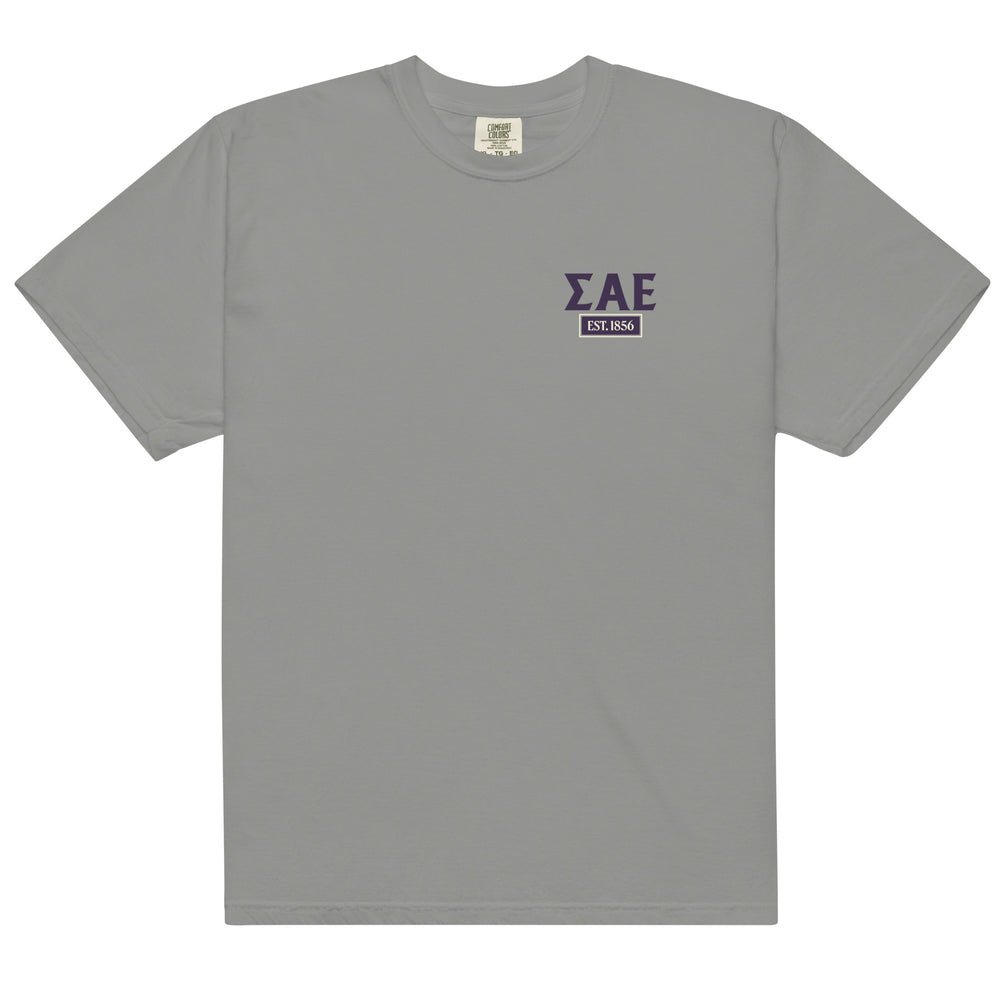 Sigma Alpha Epsilon's best friend is now on a t-shirt! Shop Drop 008 featuring an SAE dog on a comfort color t-shirt.